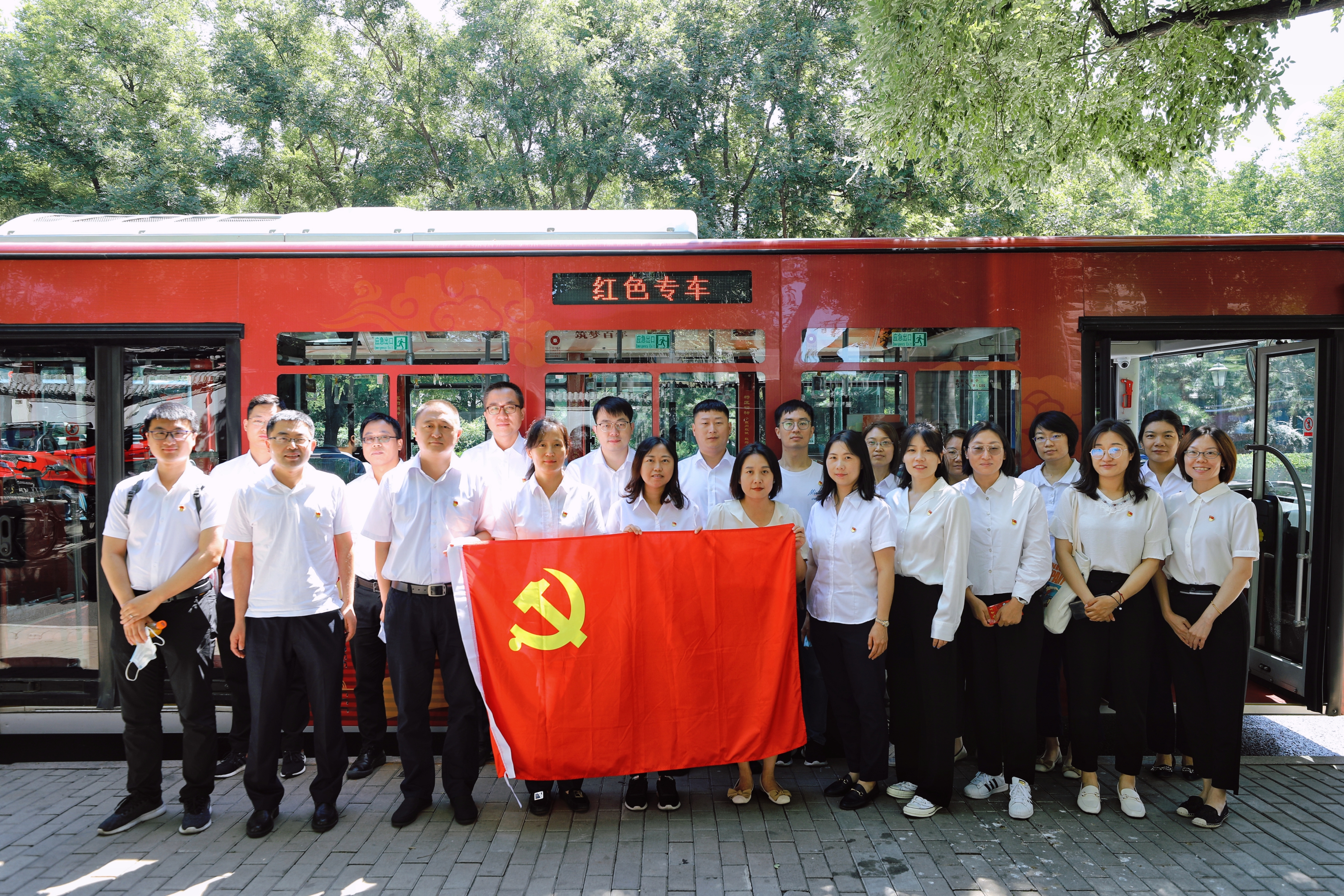 乘客朋友們,歡迎您乘坐‘紅色專車’。我們現(xiàn)在所在的地方是北大紅樓,這里曾是新文化運動的大本營,五四運動的發(fā)源地,最早系統(tǒng)宣傳馬克思主義的紅色陣地……”7月8日上午,來自廣利核公司6個基層黨支部的30余名黨員乘坐北京公交“紅色專車”由新文化運動紀(jì)念館開往李大釗故居。